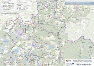 Szczegółowa mapa strefy sąsiedztwa blisko granicy „Daseinsvorsorge im grenznahen Nachbarschaftsraum / Dostęp do dóbr i usług w strefie sąsiedztwa blisko granicy” obejmuje: