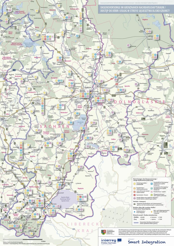 Ponadto we współpracy z powiatem Görlitz/Wokrjes Zhorjelc oraz administracjami miast i gmin polskich powiatów przygranicznych, tzn. powiatu zgorzeleckiego i powiatu żarskiego, opracowano szczegółową mapę „Dostęp do dóbr i usług w strefie sąsiedztwa blisko granicy”, w oparciu o mapy modelowego przedsięwzięcia „Długoterminowe zabezpieczenie mobilności i usług użyteczności publicznej na obszarach wiejskich“ Federalnego Ministerstwa Komunikacji i Infrastruktury Cyfrowej (BMVI).