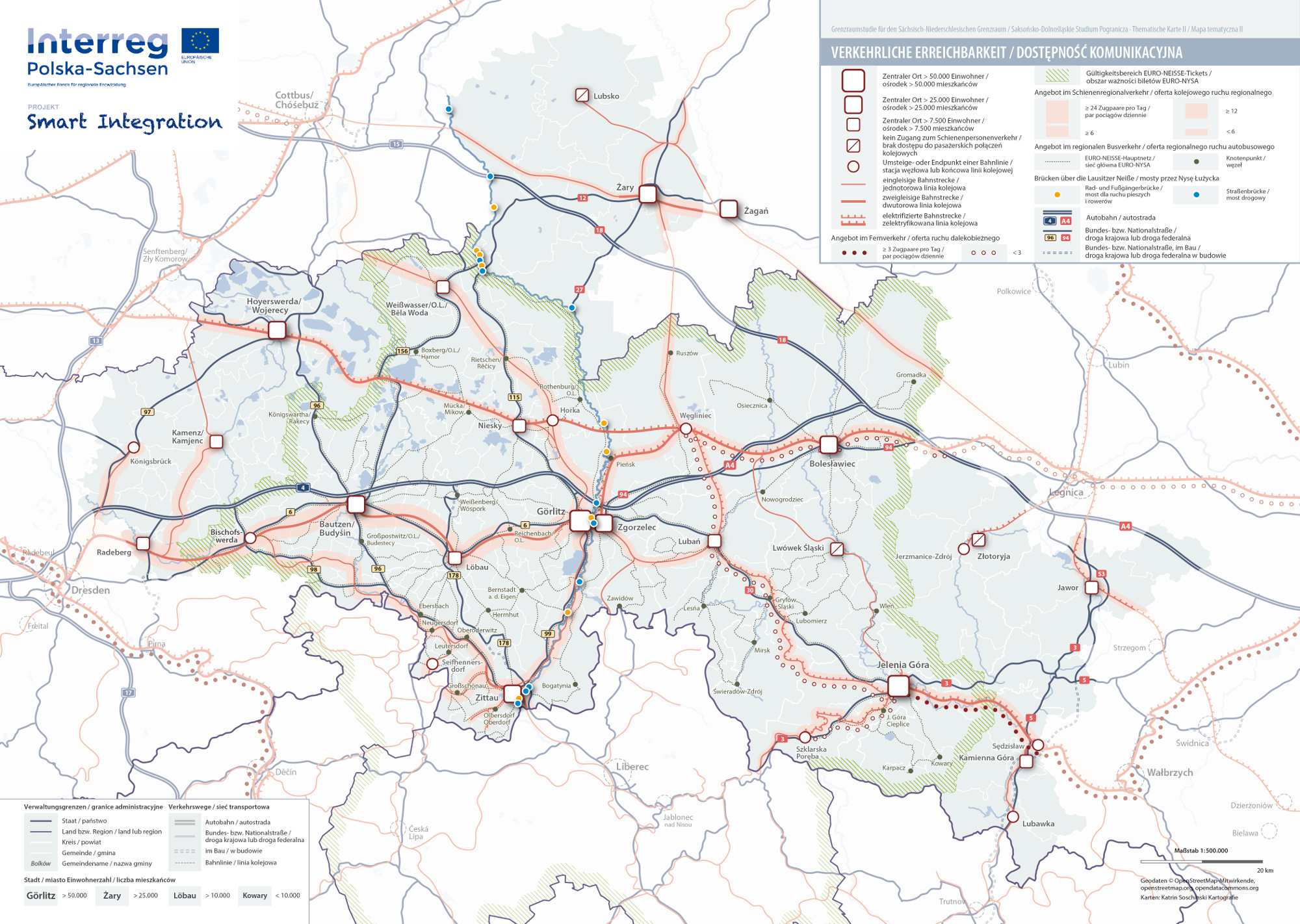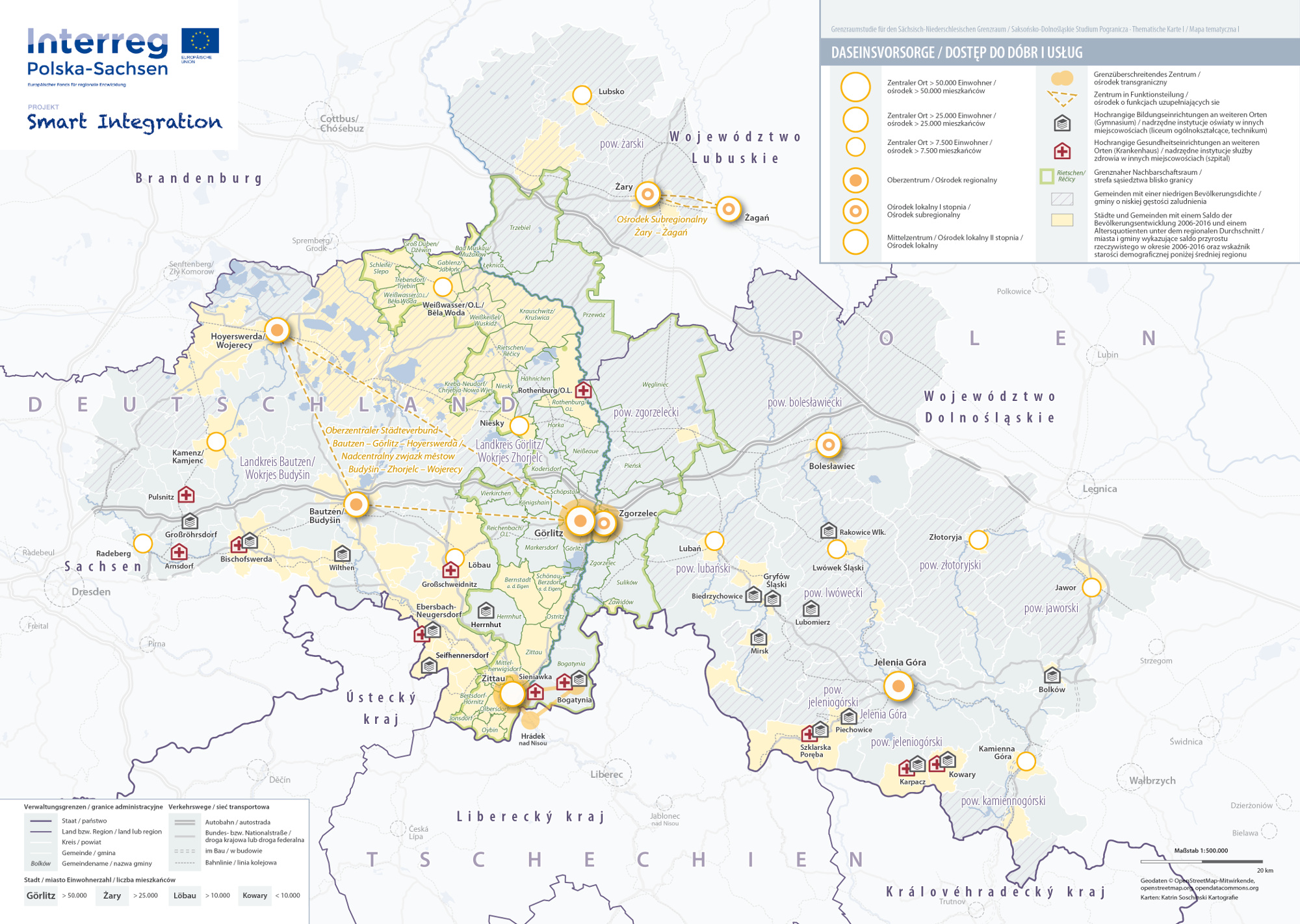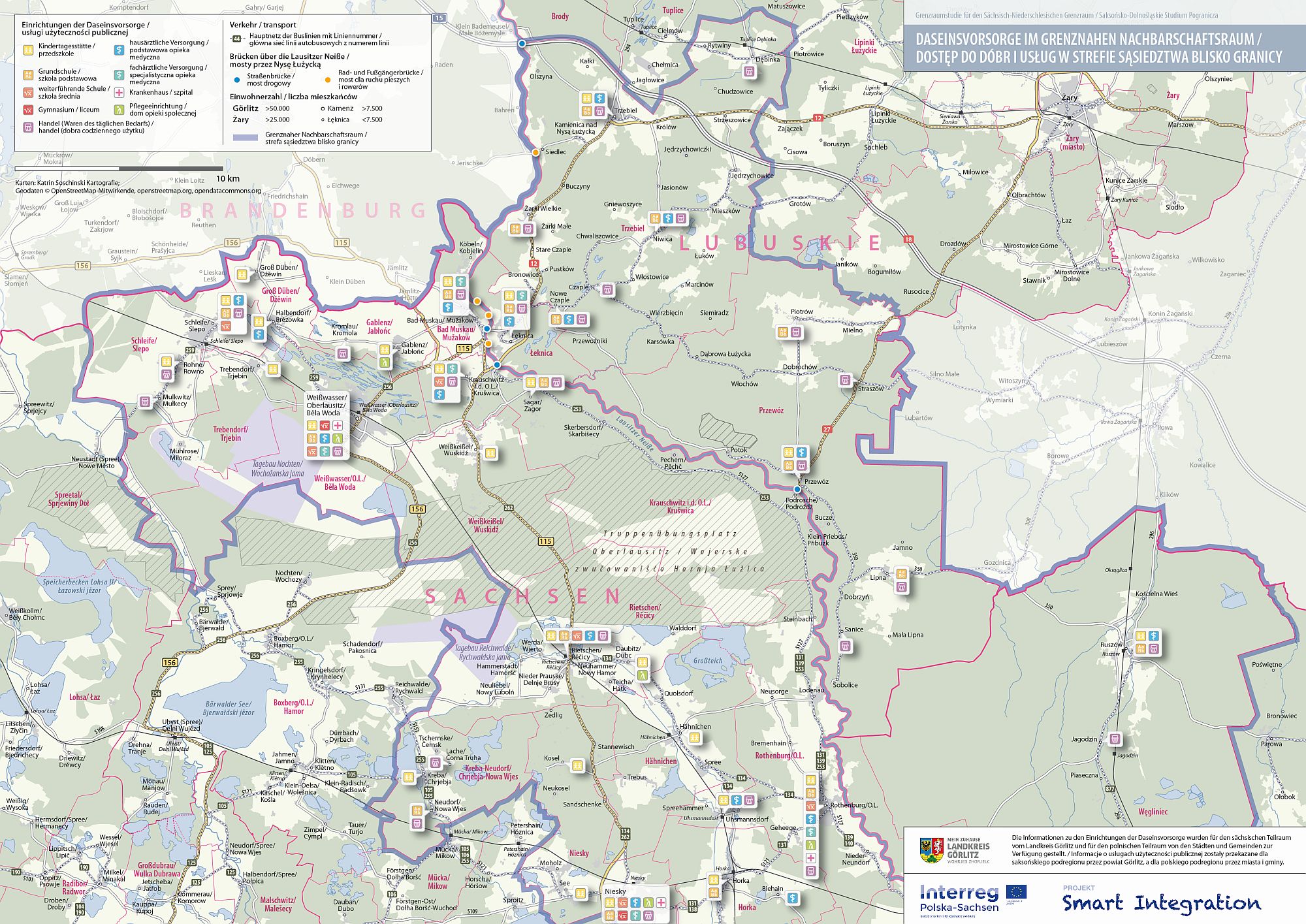 Ponadto we współpracy z powiatem Görlitz/Wokrjes Zhorjelc oraz administracjami miast i gmin polskich powiatów przygranicznych, tzn. powiatu zgorzeleckiego i powiatu żarskiego, opracowano szczegółową mapę „Dostęp do dóbr i usług w strefie sąsiedztwa blisko granicy”, w oparciu o mapy modelowego przedsięwzięcia „Długoterminowe zabezpieczenie mobilności i usług użyteczności publicznej na obszarach wiejskich“ Federalnego Ministerstwa Komunikacji i Infrastruktury Cyfrowej (BMVI).